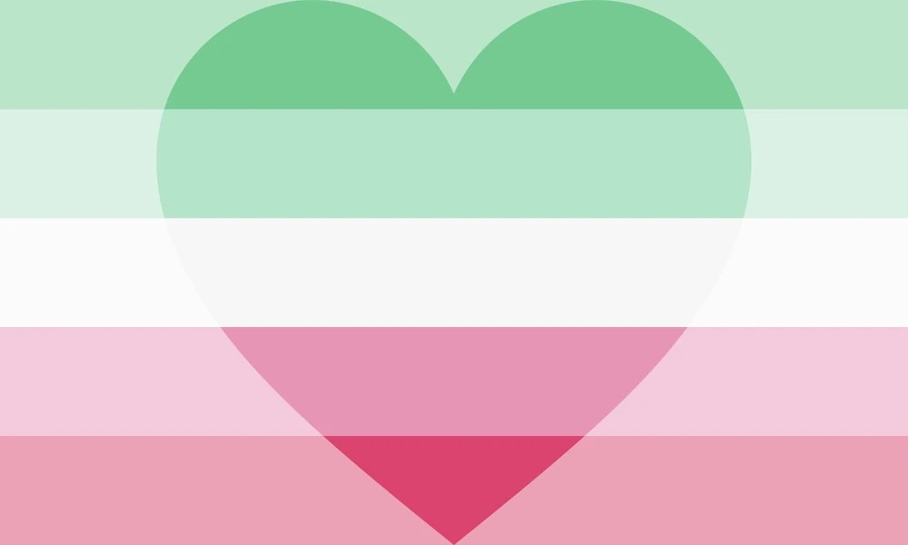 The abroromantic flag is the same as the abrosexual one but with a heart overlaid to resemble romantic attraction.