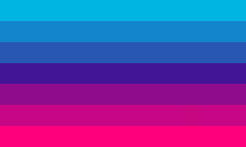 The ambigender flag contains seven stripes. the meaning of the colours chosen is unknown but it is believed to be based off the androgyne flag.